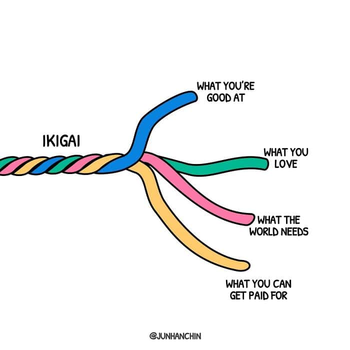 Collection of single panel comic art and Jun Han Chin illustration pieces featuring minimalist graphs and charts about life.