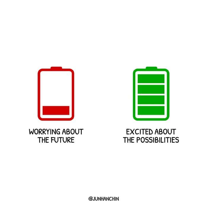 And the anxiety vs reality squares? Single panel comics like that are a gut punch disguised as geometry. The red square is huge. The yellow square is tiny. Your brain does not care. It will still act like the red square is a meteor.
