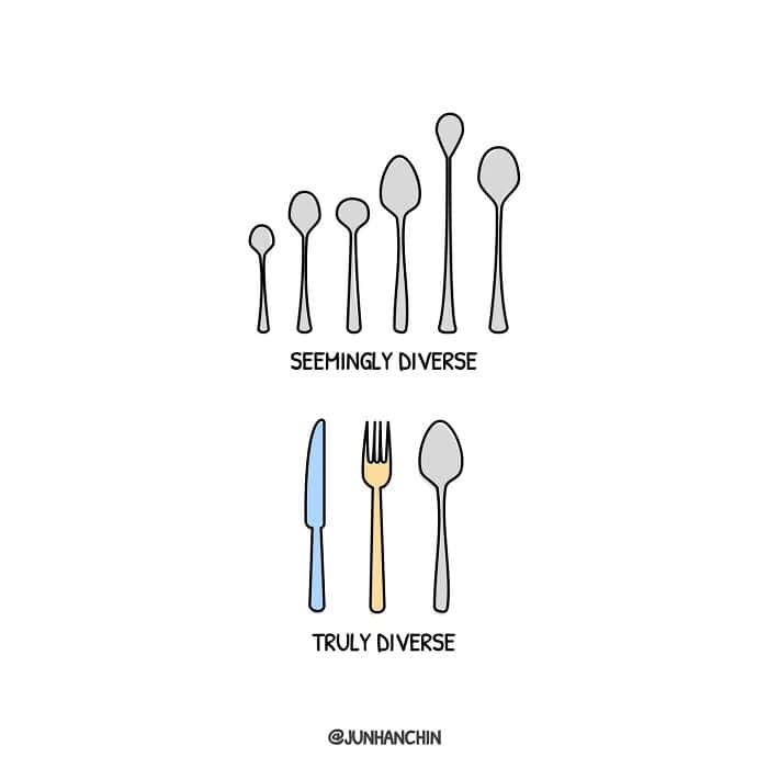 Some single panel comics are loud. These aren’t. These are the kind that land softly, then stick around in your head while you’re brushing your teeth later. Jun Han Chin’s work has that clean, minimalist punch where a tiny drawing somehow feels like a full conversation.