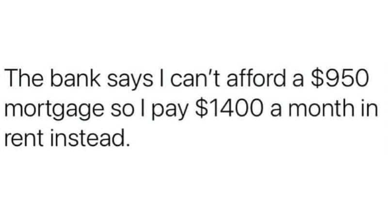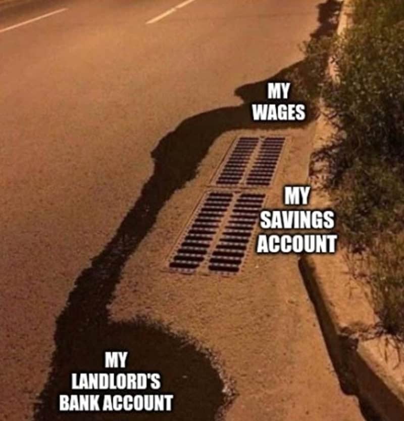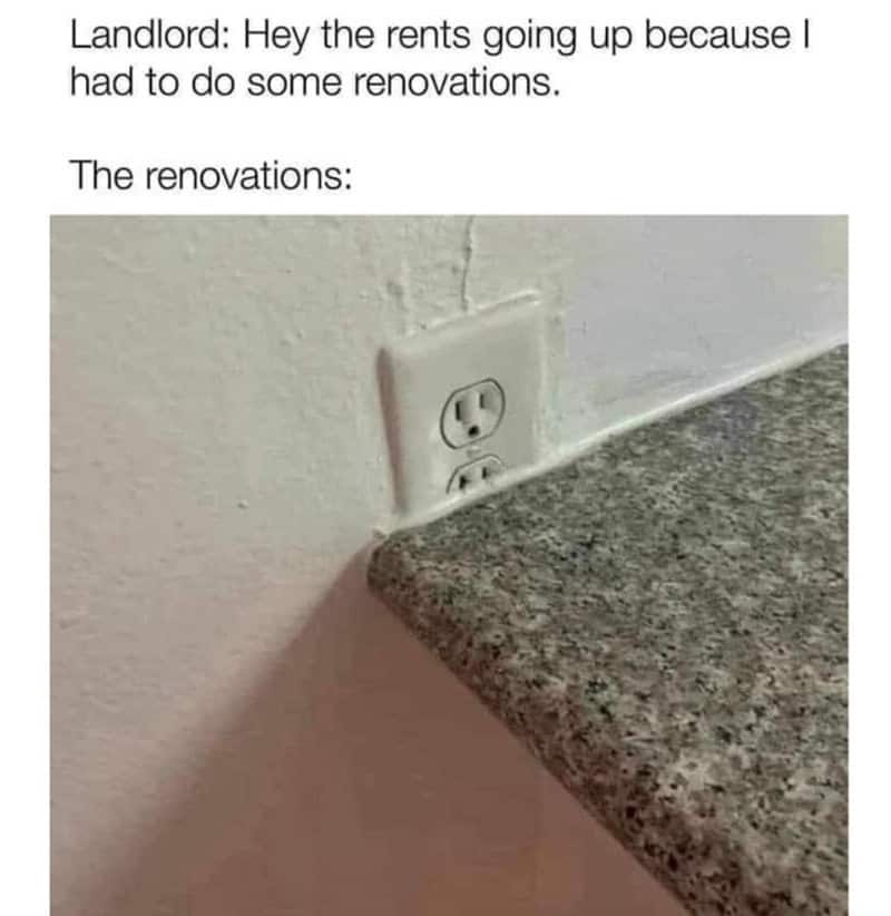 If you need more housing-market therapy like these renter memes: 30 Landlord Memes That Should Be Illegal, 40 Money Memes For People Who Pay Utilities, and 30 Home Reno Memes For Anyone Who Has Lifted A Couch Wrong.