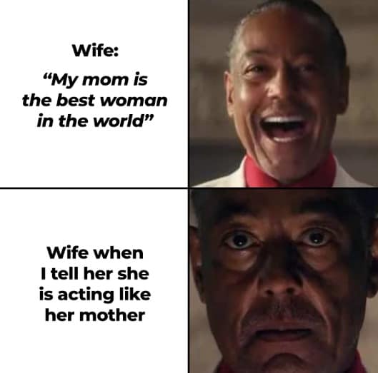 The Gus Fring “wife praising her mom vs acting like her mom” comparison is a clean little jump-scare for husbands everywhere. It’s not hate. It’s fear. A man sees the future and it has a familiar haircut.