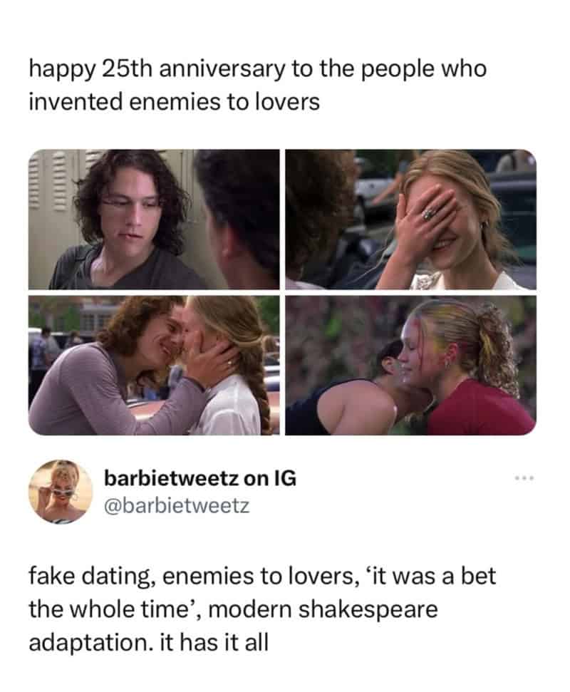 From Julia Roberts ruining weddings to Heath Ledger playing with fire, the romantic comedy genre is full of iconic and questionable moments. We have gathered the funniest memes that poke fun at the clichés we pretend to hate but secretly love.