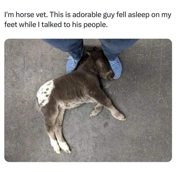 The foal sleeping on the vet’s shoes is almost too much to handle. It is pure trust in photo form. These images remind us that there is still innocence in the world, usually covered in fur or feathers. Hopefully, these little guys gave you enough energy to get through the rest of your day without crying.