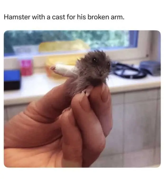 These baby animal memes are exactly what we need right now. We have a hamster with a tiny cast on its arm. A tiny cast! It is a medical emergency but it is also the cutest thing that has ever happened in the history of medicine! It makes you want to jump up and down and scream, doesn’t it? Just seeing a kitten cuddling a shark with sneakers makes me believe that world peace is possible. If a cat and a shark can be friends, we can all get along!