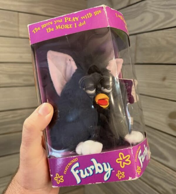 Some of these funny 90s toys were basically tiny chaos machines. Like that boxed Furby sitting there looking harmless, pretending it didn’t once wake up on its own and speak in the dark like a possessed walkie-talkie. We all invited that into our homes. Voluntarily. Millennial childhood was a fearless time.