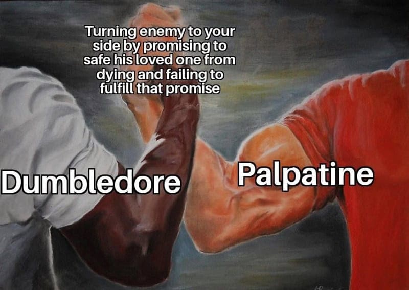 There are a few categories of Harry Potter memes that always hit, and the first is “why does this character look different every time I blink.” The Dumbledore hair-to-beard transformation is peak “new year, new wizard,” like he went to a salon and asked for “powerful, but approachable.” It’s the kind of glow-up that makes you wonder if Hogwarts has a staff spa.