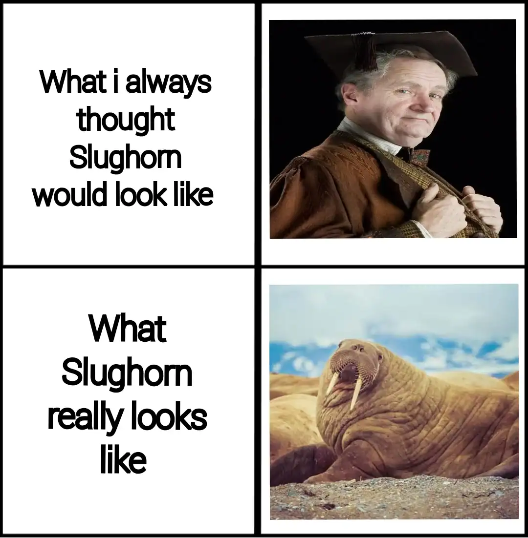 For the book-nerd lane, the Slughorn walrus comparison is a classic: readers have been holding onto that description for years like a receipt. Book accuracy matters, and the internet will absolutely litigate it with screenshots and chaos. Wizarding world memes were practically built for this exact kind of debate.