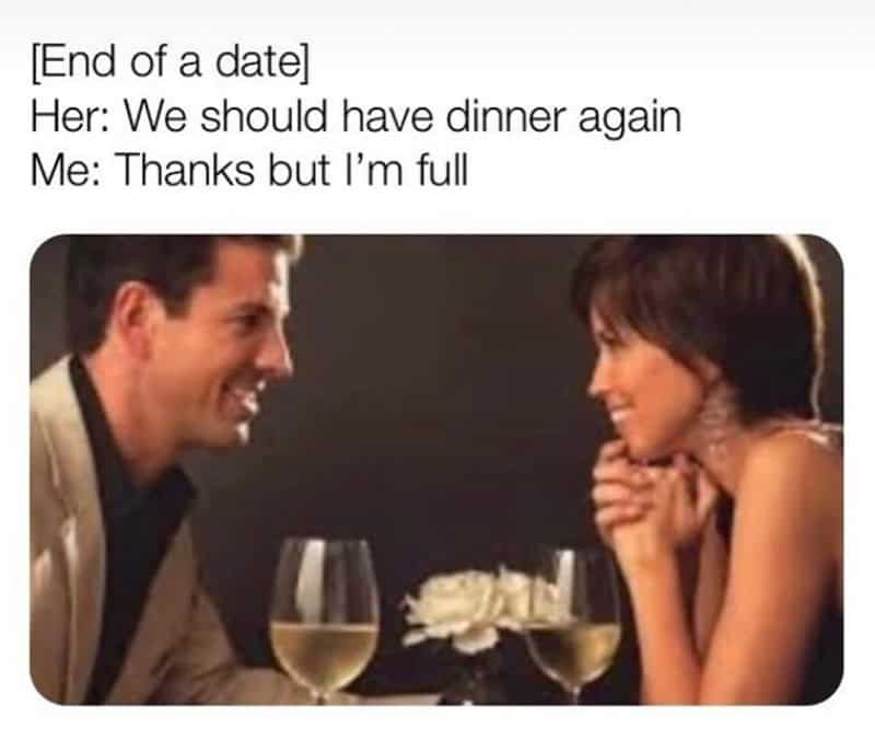 If these dating memes felt a little too familiar, keep the energy going with 35 Funny Texts That Should’ve Ended the Conversation Immediately, 35 Relationship Memes for People Who Love Bad Decisions, and 32 Awkward First Date Stories That Deserve Hazard Pay.