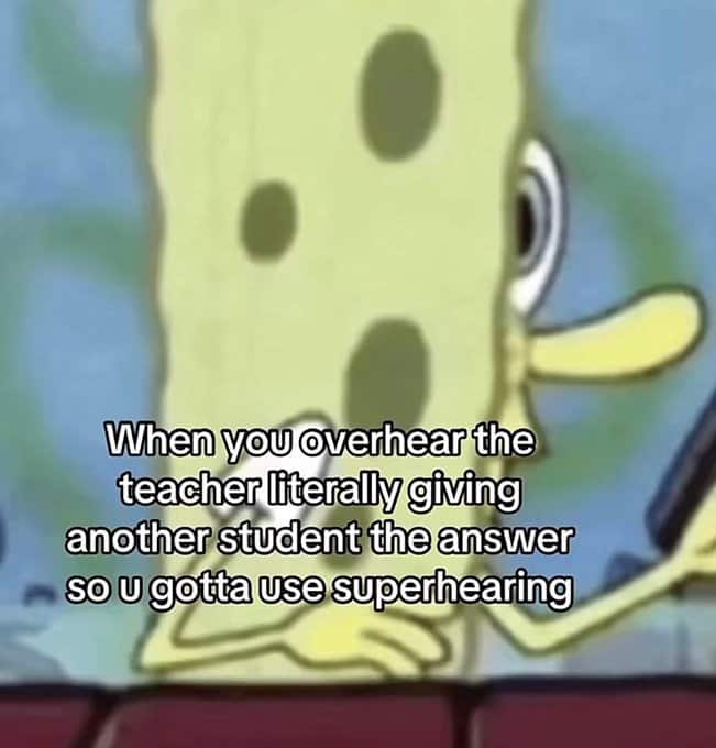 The SpongeBob hearing meme is a classic because it is true. You become a superhuman when your grade is on the line. And the one about the test finding your weak spot? That is just rude. It is like the paper knows what you didn’t study. The algorithm is in our heads, people.