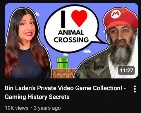 The Osama Bin Laden Animal Crossing thumbnail is another level of “who approved this as a sentence.” A Mario hat? Animal Crossing fandom energy? History class didn’t prepare us for whatever timeline this is, but the clickbait thumbnails keep pushing reality further off the road every year.
