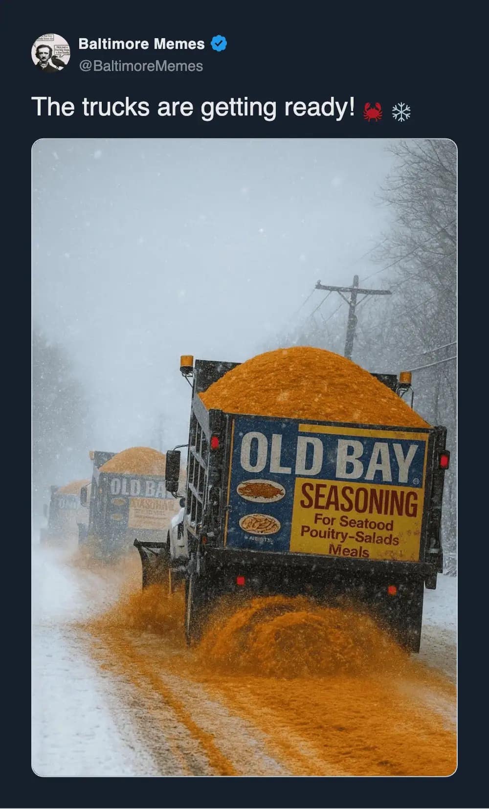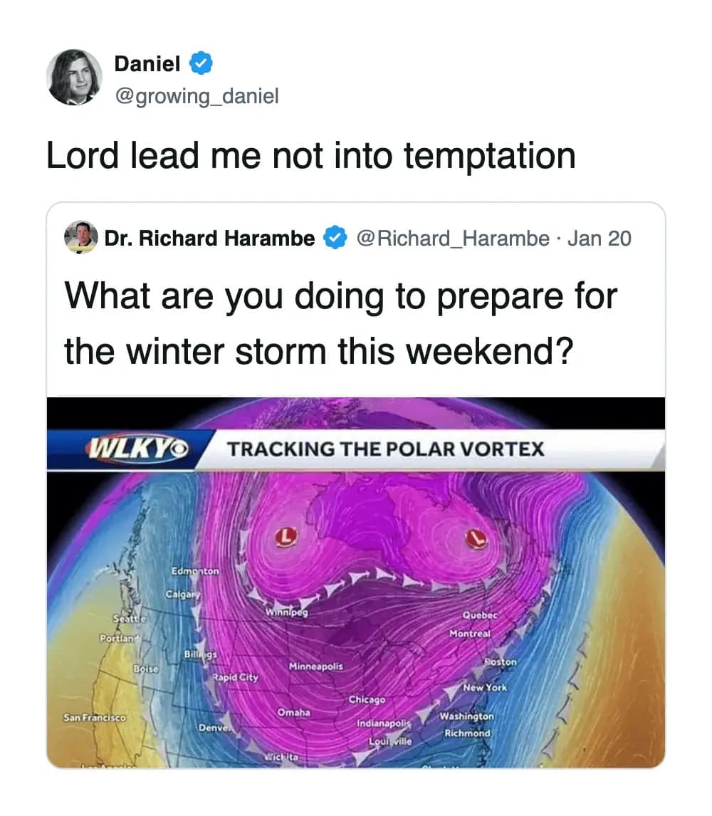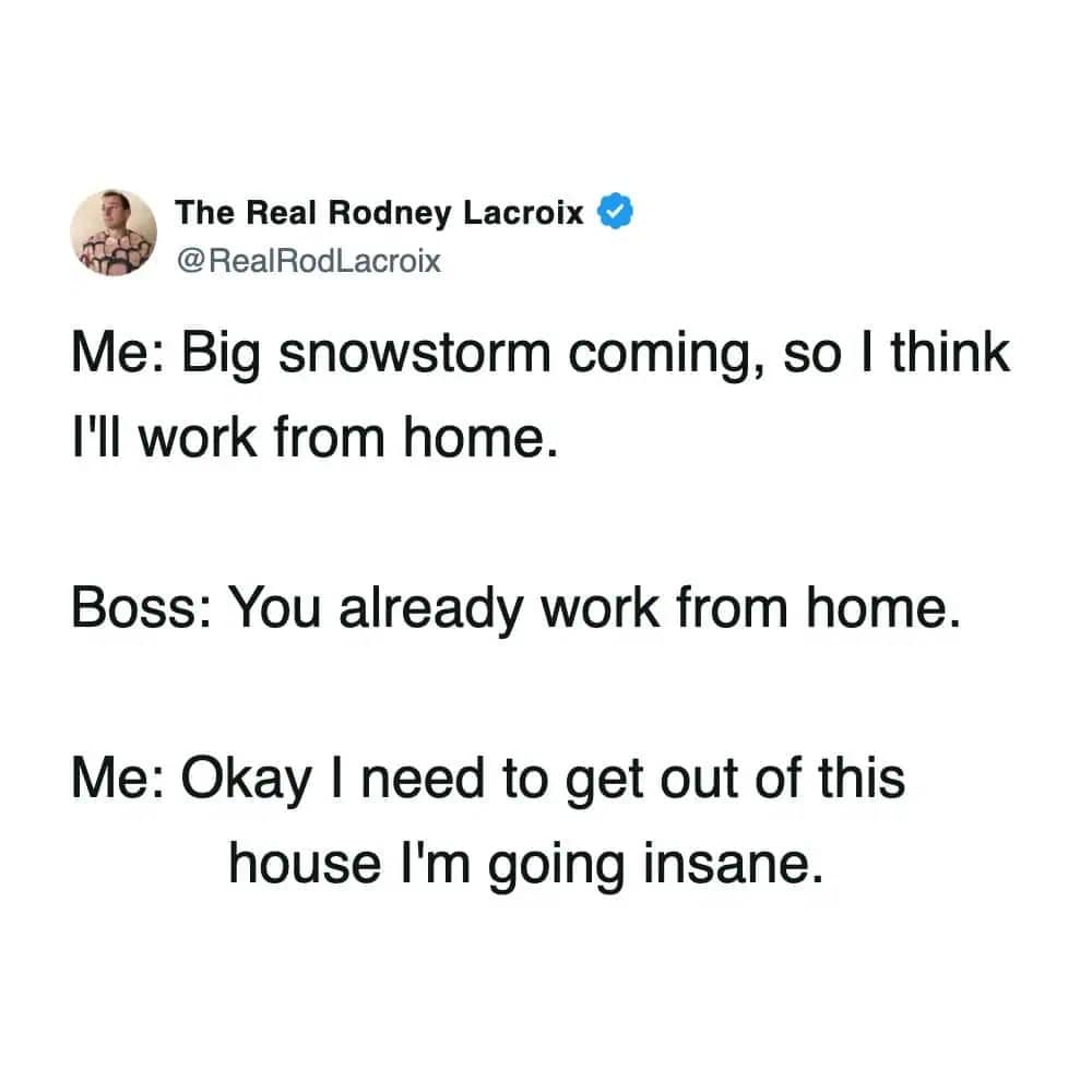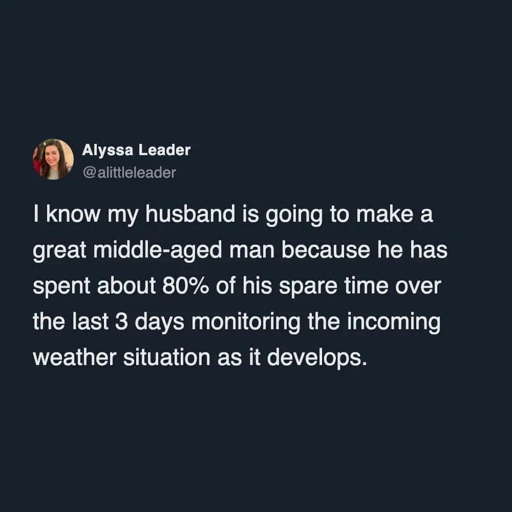And the forecast range memes? Nothing bonds a community like being told you might get 1 inch or 31 inches. Cool. Helpful. Love that for us. Snowstorm memes like that are the only thing keeping us from screaming into a scarf.