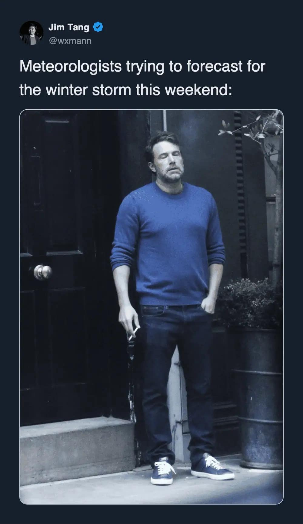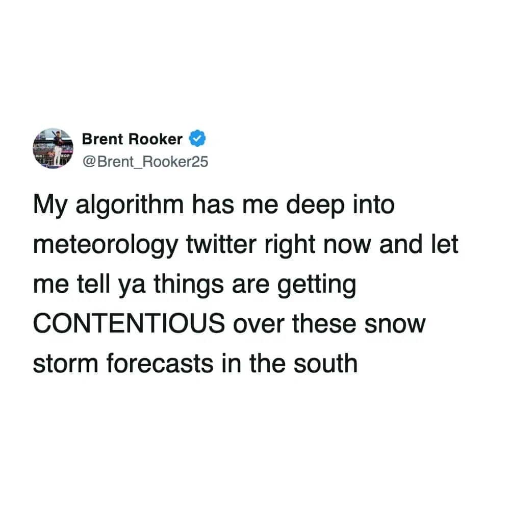 And the forecast range memes? Nothing bonds a community like being told you might get 1 inch or 31 inches. Cool. Helpful. Love that for us. Snowstorm memes like that are the only thing keeping us from screaming into a scarf.