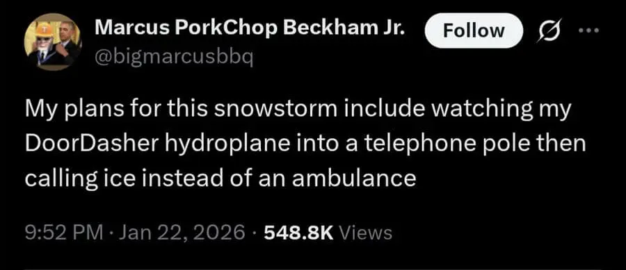 There’s a specific kind of unwell humor that shows up when the weather gets bad. Like the snowstorm delivery tweet that goes straight past “help” and into “call immigration.” That’s not a joke, that’s a villain origin story with a side of fries. Funny memes really said: empathy is optional, Wi-Fi is not.