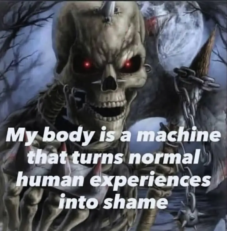 Also: the skeleton meme about your body turning normal experiences into shame? That one’s too honest. Like yes, I said “you too” when the waiter told me to enjoy my meal and now I must change my name. Relatable memes are a public record of private humiliation.