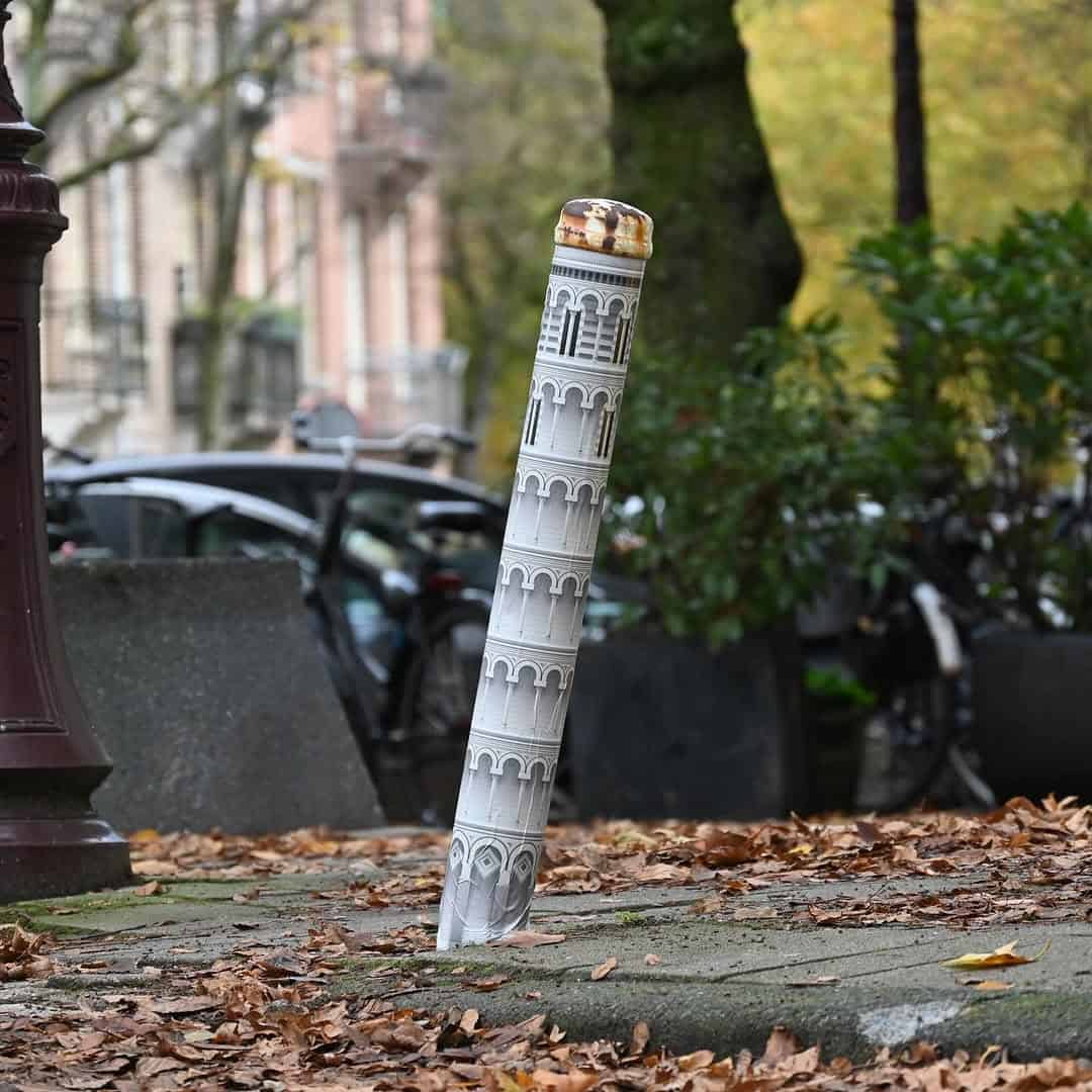 Collection of cool street art highlights and amazing street art favorites featuring the Viking lamp and the Leaning Tower bollard