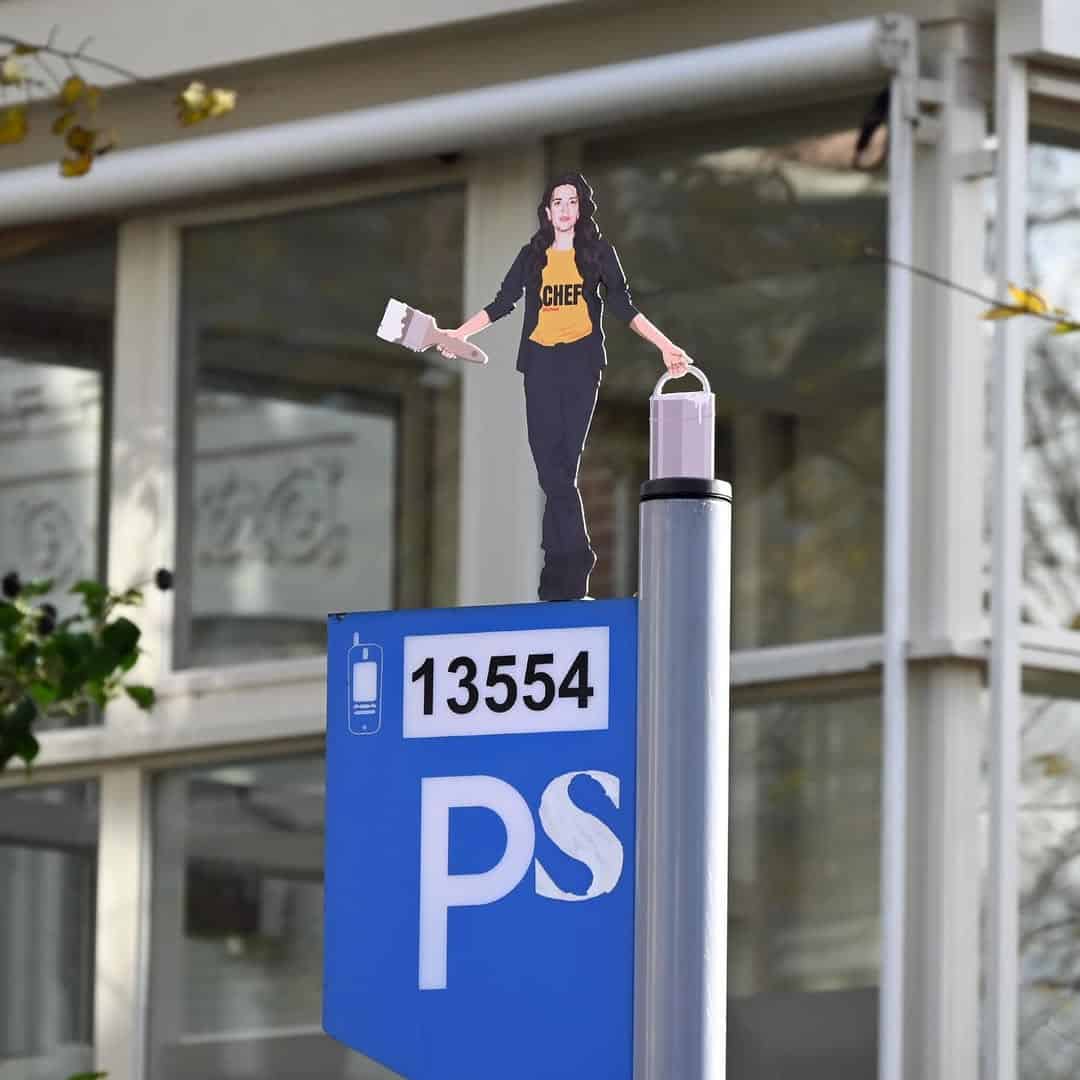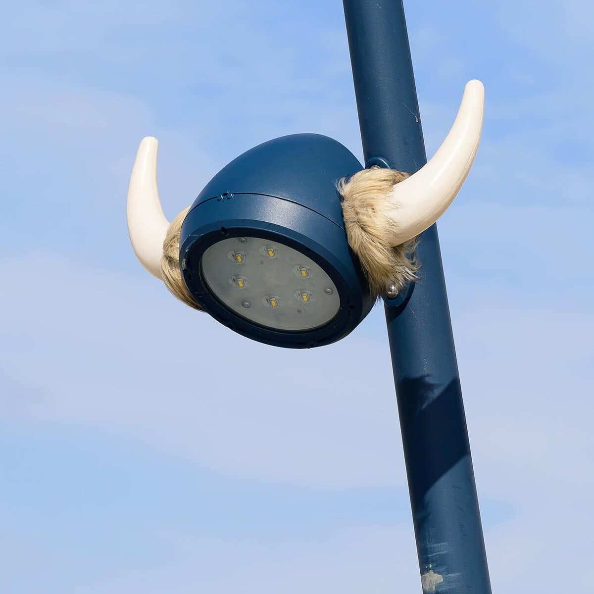 Then there’s the street light that got upgraded into a Viking helmet, complete with horns and fur. That’s the kind of idea that makes you smile immediately. Suddenly the block has a tiny guardian. Urban art at its best is basically world-building.