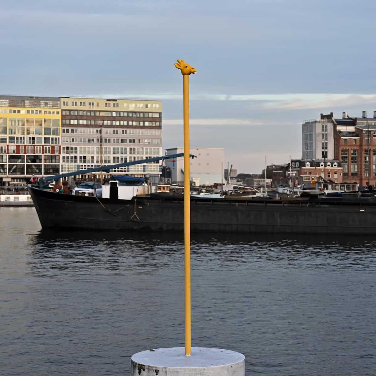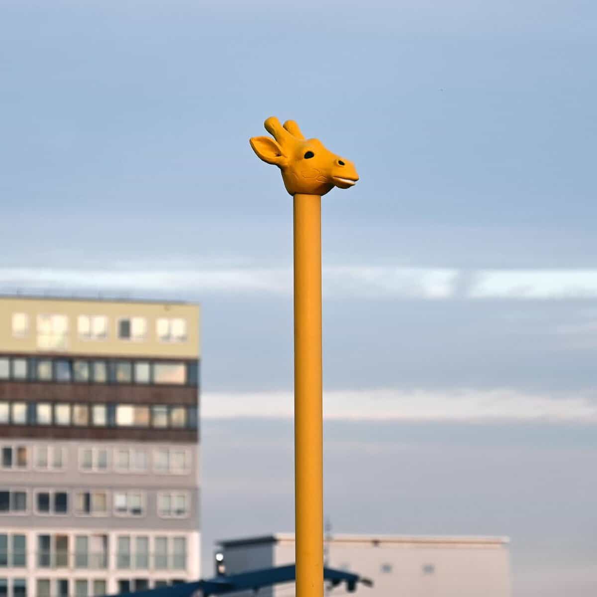 The giraffe pole by the water is another perfect example. One tall yellow post, one small giraffe head, and now the harbor has a mascot. It’s so simple you almost miss it… and then you can’t stop grinning. Cool street art loves that “wait—hold on” moment.