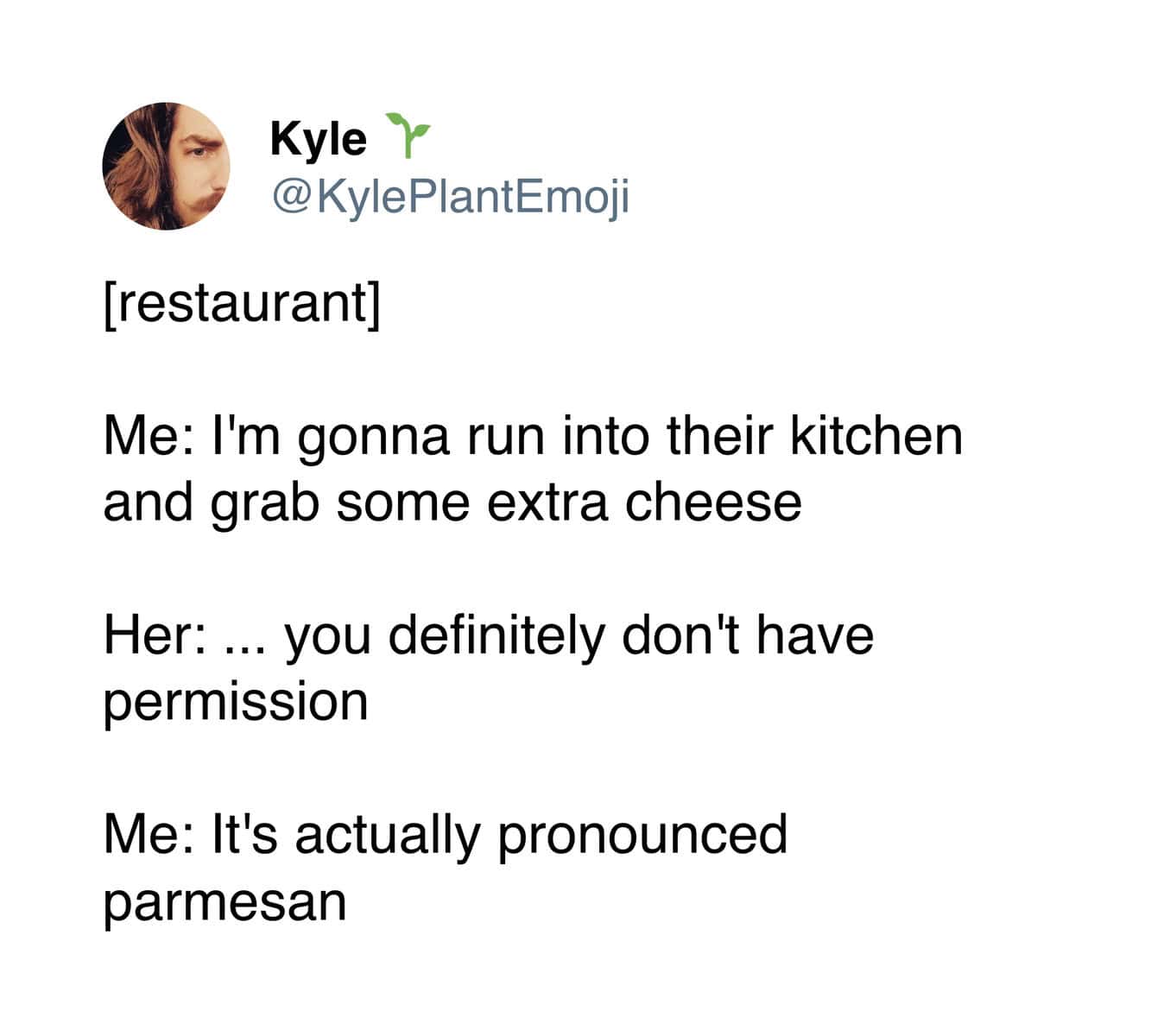 Then we’ve got restaurant cheese, which is its own romantic genre. The “permission vs parmesan” moment, the Ghost-style reimagining with a waiter grating cheese like it’s a sacred ceremony… it’s funny, but also? I get it. Parmesan has presence.