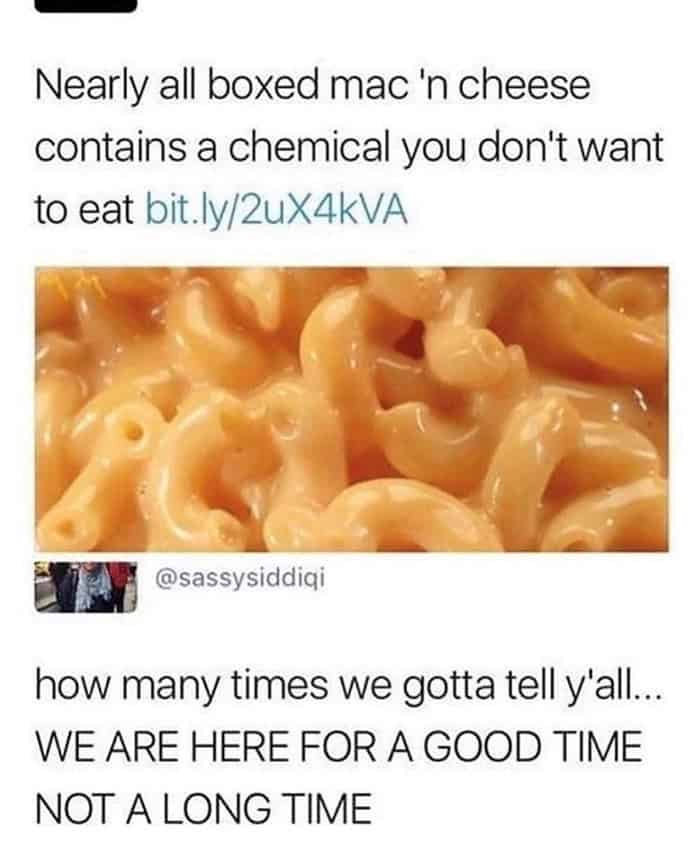 And the boxed mac and cheese “good time not a long time” energy? That’s the entire internet in one sentence. We know. We’re aware. We’re eating it anyway.