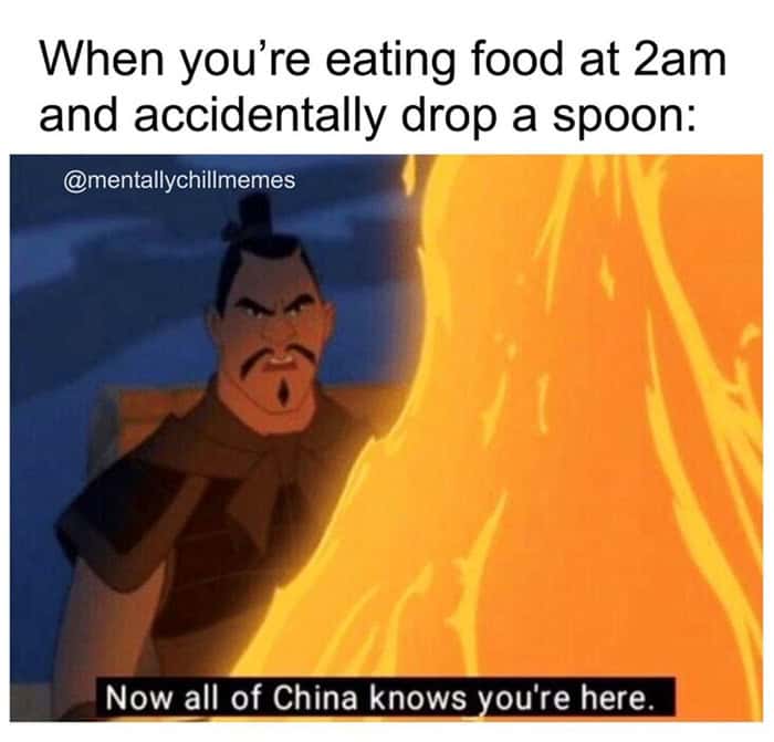 The stealth-snacking moments are so real too. Dropping one spoon at 2 a.m. and it sounding like a cymbal crash in Mulan? That’s how you know your house has no mercy. All of China knows you’re here. Your roommate knows. Your ancestors know.