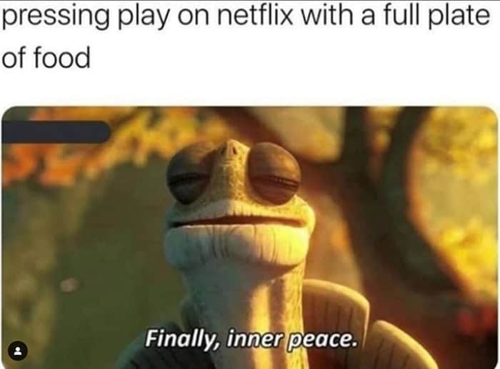 Food memes also understand the sacred moment when Netflix starts and your meal is hot. Master Oogway calling it inner peace? Correct. That’s enlightenment you can chew.