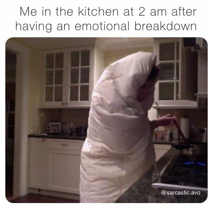 And the blanket burrito chef cooking in the kitchen at 2 a.m. is the most relatable image in modern history. You’re not unwell. You’re just trying to stay warm while you make something that feels like a hug.