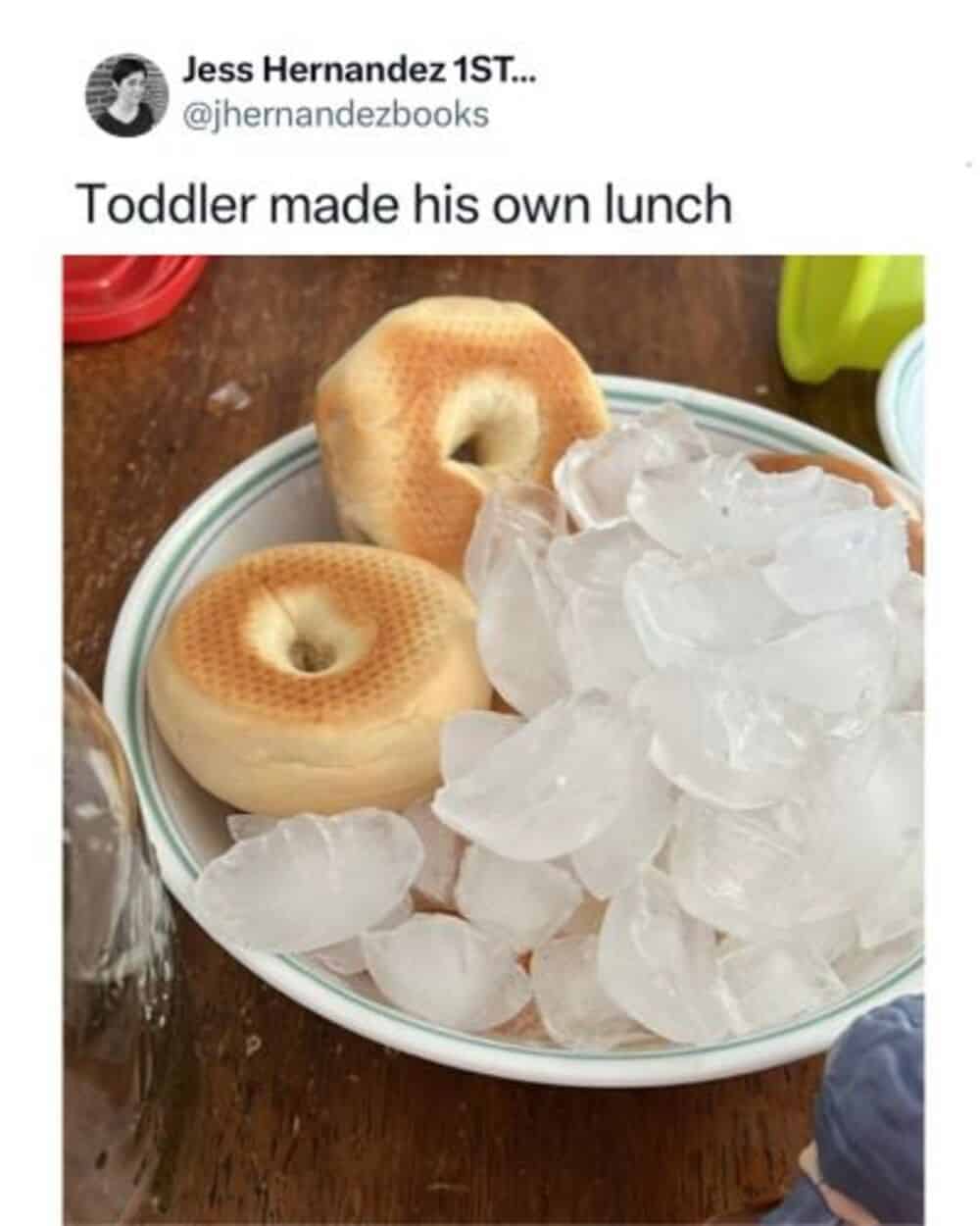 The “gourmet meal” of ice cubes and bagels is a masterpiece. It is avant-garde cuisine. And the toddler mispronouncing “crayons” as “chaos” is the most accurate thing I have ever heard. They are agents of entropy. They are here to destroy order and replace it with sticky hands.