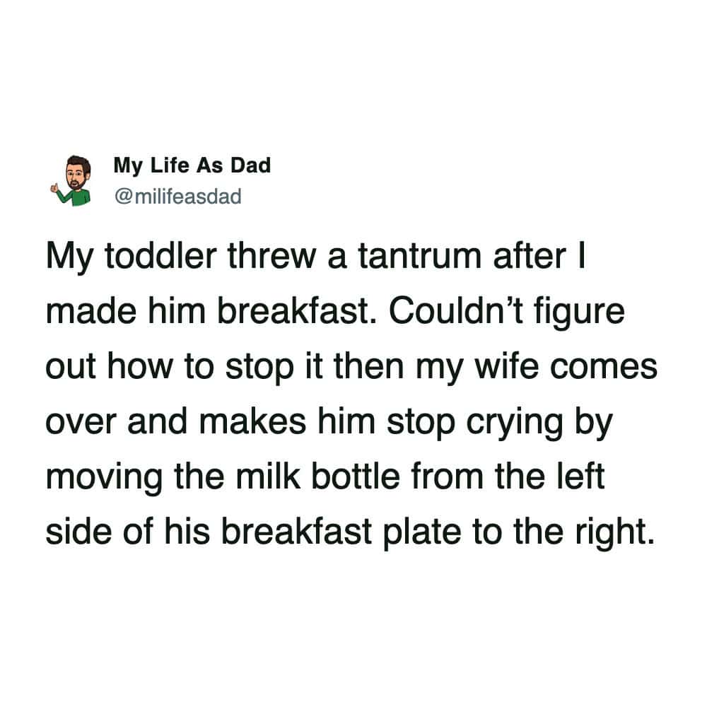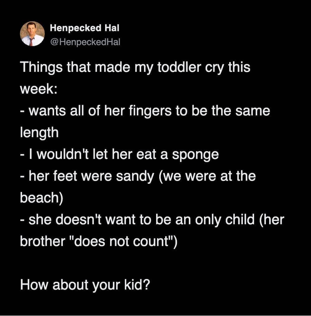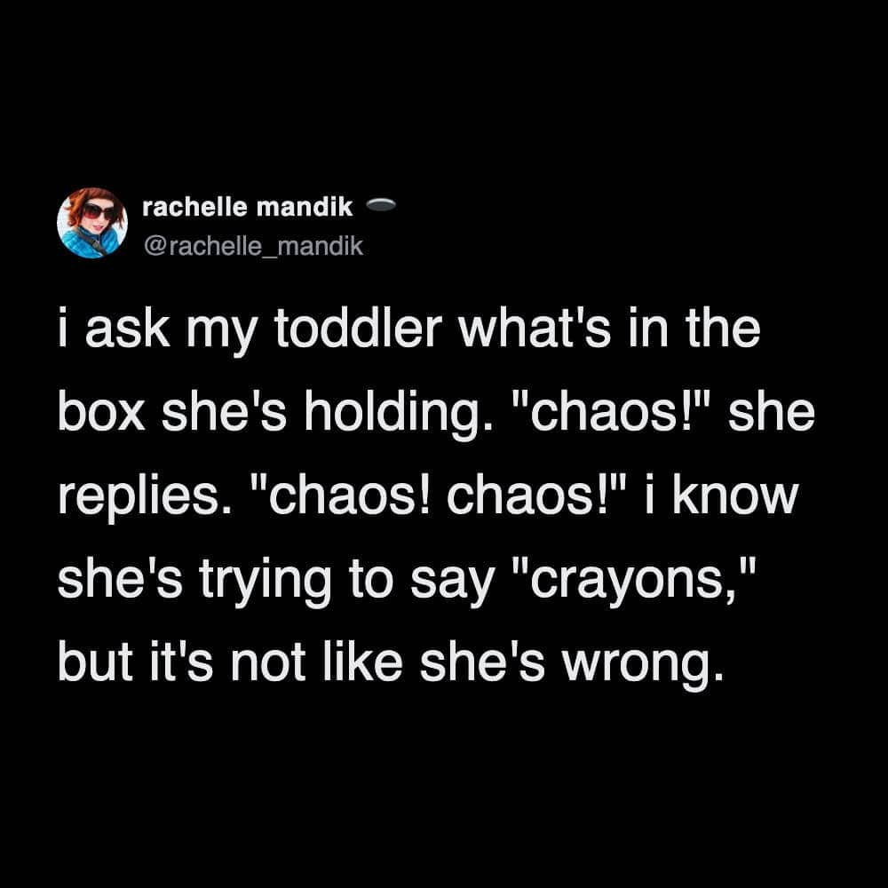 These parenting tweets about toddlers are the only way to stay sane. You have to laugh! If you don’t laugh, you will cry, and then the toddler will cry, and then the neighbors will call the police! It is a high-stakes game of survival! Look at the kid putting crayons in a bottomless box. He is learning about infinity! He is a philosopher! Or maybe he is just confused. Who knows? They are aliens! Beautiful, sticky aliens!