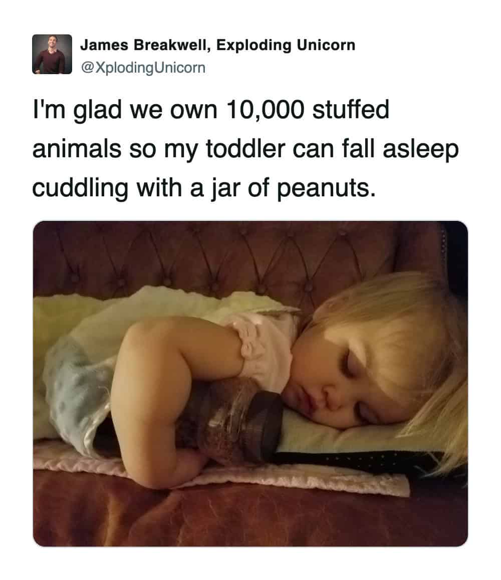 Alrighty then! Let’s talk about toddlers! They are tiny, they are loud, and they have the energy of a nuclear power plant melting down! I love it! I hate it! It is a rollercoaster of emotions! One minute they are sleeping with a jar of peanuts like it is a teddy bear, and the next they are eating a crayon and calling it “chaos!” That is poetry! That is art!