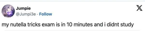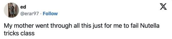 Why it matters: this is how a viral caption becomes a shared language. Everyone gets to perform the same joke (“I learned this in Nutella class”), and it instantly signals “I’m in on it,” without anyone needing to explain the plot.
