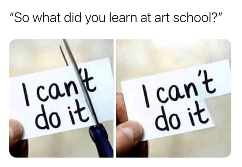 Pursuing a creative degree is a unique experience filled with late nights, harsh critiques, and expensive supplies. We have gathered the funniest and most relatable memes for the students who are suffering for their art.