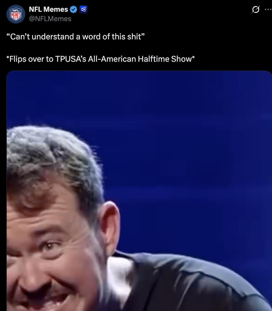 The funniest part of TPUSA Halftime Show memes is how they turned into a forensic investigation. Not “lol cringe,” but “Here are my findings, Your Honor.”