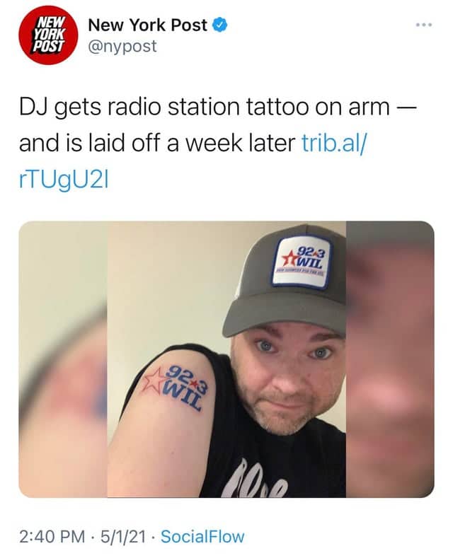 You see, this is why I never celebrate anything. Ever. You celebrate, and the universe punishes you. It’s a rule! You get a tattoo of a radio station? You get fired the next day. Of course you do! That’s how it works! It’s hubris! The gods of irony are watching, and they have a sense of humor, and it’s cruel.