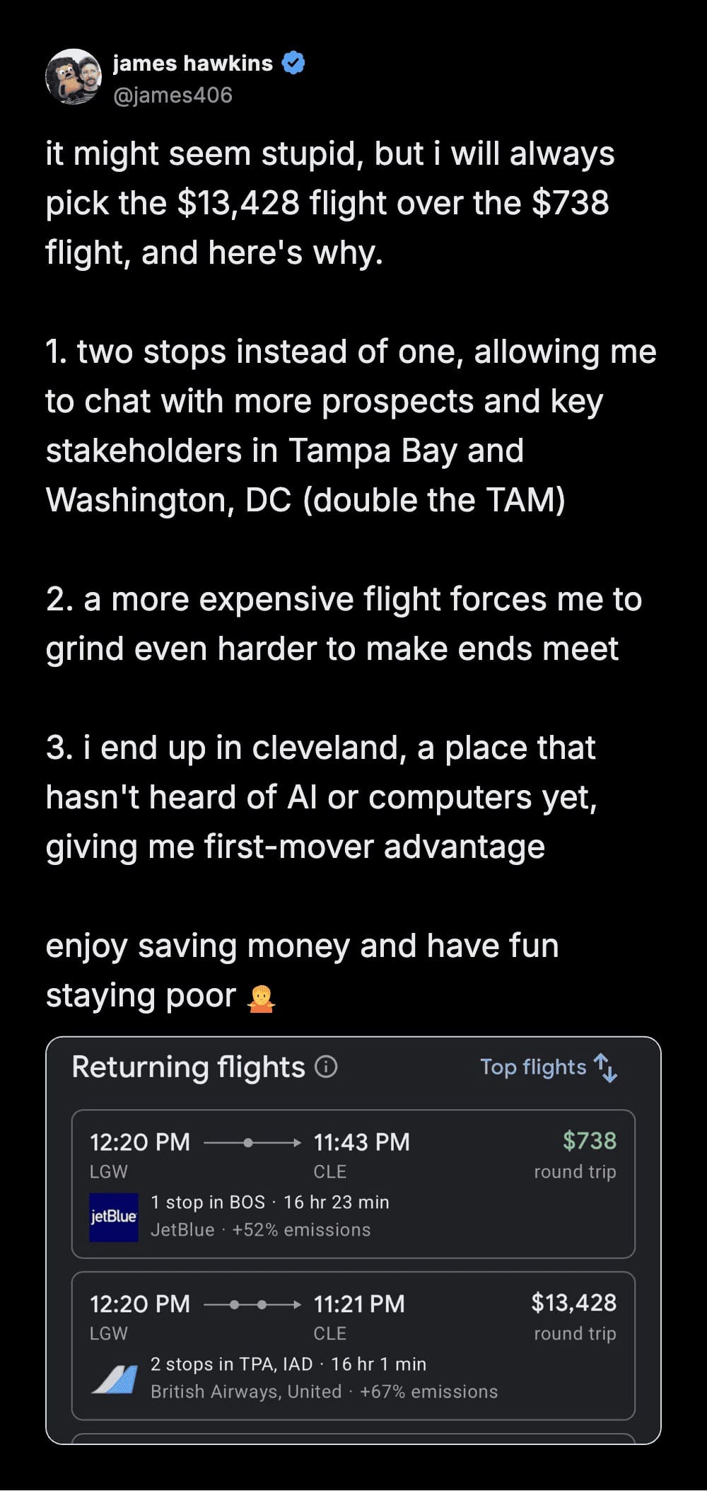 Twitter post by Eli regarding a fake fun fact about Costco variety pack flavors keeping customers humble.
