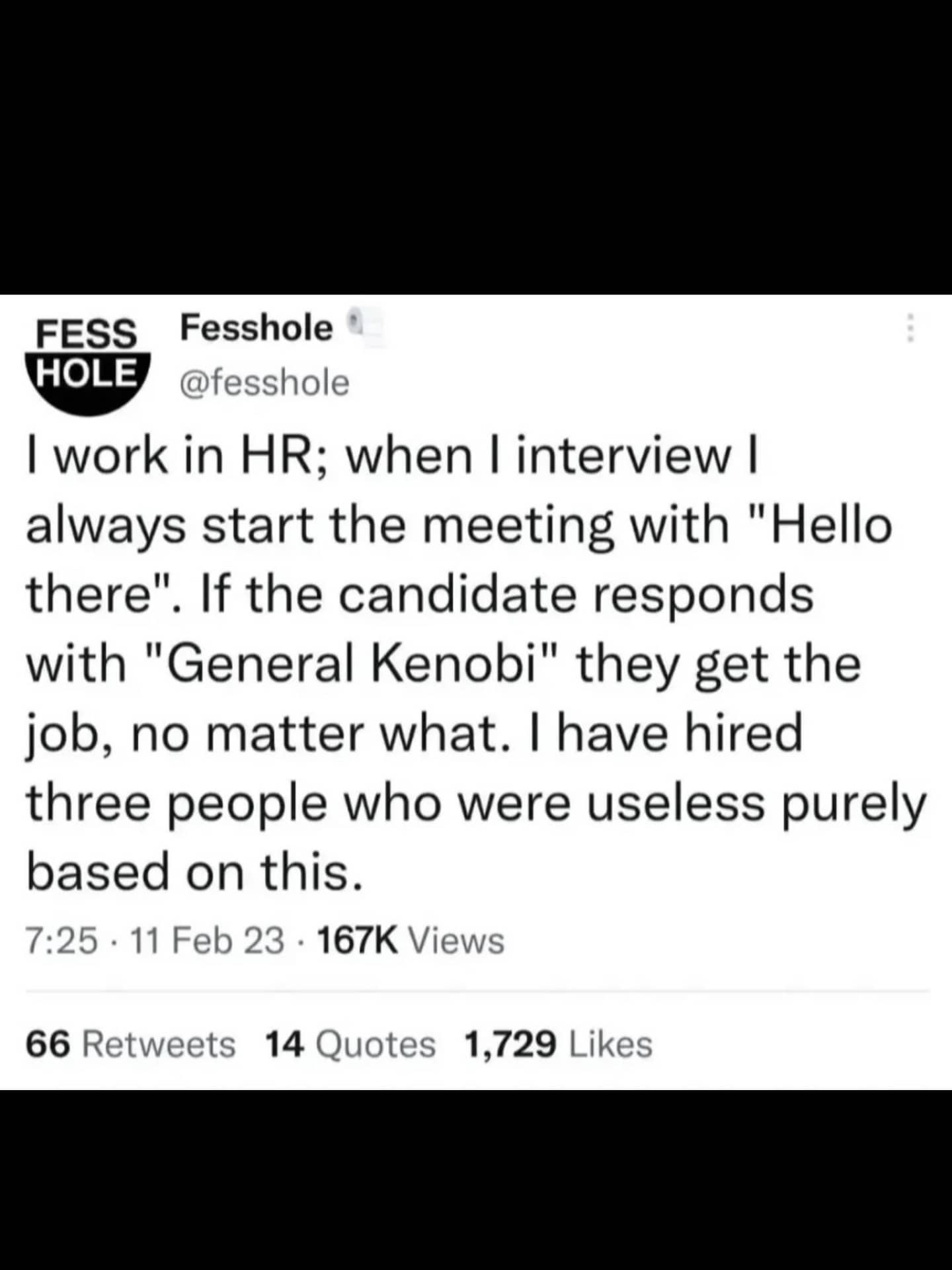 Social media confession about attending job interviews as a hobby for the sense of occasion.