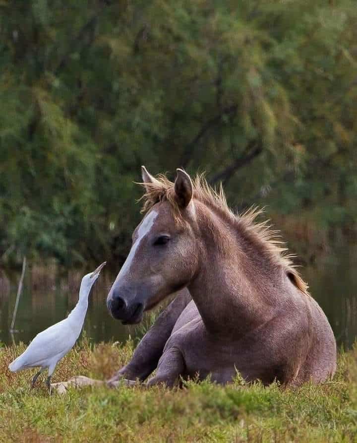The horse head beach edit is art. “I love you.” I love you too, random floating horse head! And the herd hanging out with the sea turtle? That is a squad goal. They are branching out. They are making friends across species lines. It is wholesome and it is weird.
