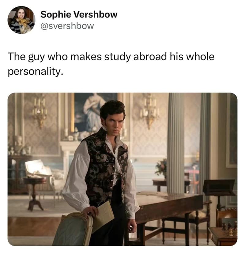And of course, the fashion and vibes category is pure serotonin. Between the overdressed confidence, the “casual” outfits that are still museum-level, and the way the show raises the standard for events, these Bridgerton memes make you want to show up to a basic invitation like you’re about to be announced to society. Add in a few character-specific quirks—bookish introvert energy, smug travel stories, the occasional soft moment—and the whole thing feels like a loving roast from fellow fans.