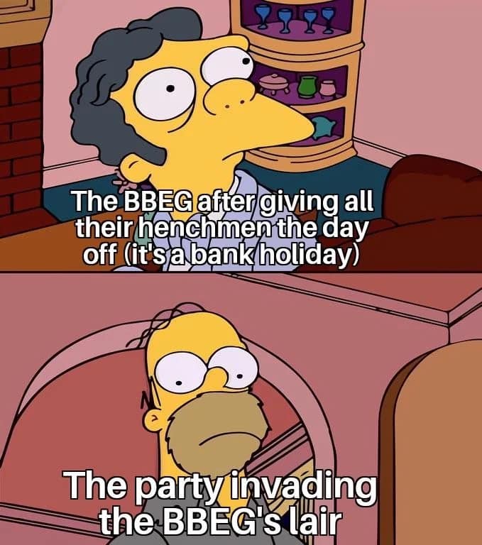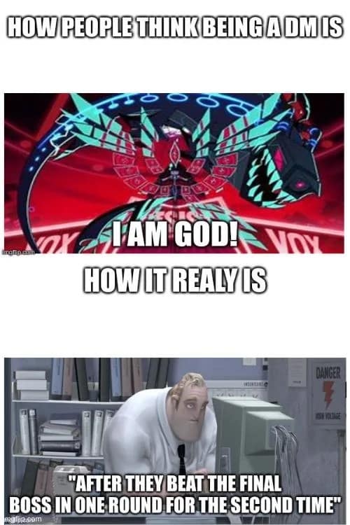 DM memes also tell the truth nobody wants to admit: half the job is looking impressed when your players say something smart, then quietly stealing it like it was always the plan. The villain wasn’t “written,” he was crowdsourced. Puzzles don’t have solutions until the table invents one that sounds cool. That’s not laziness. That’s agile development, baby. Patch notes: added plot. DnD memes.