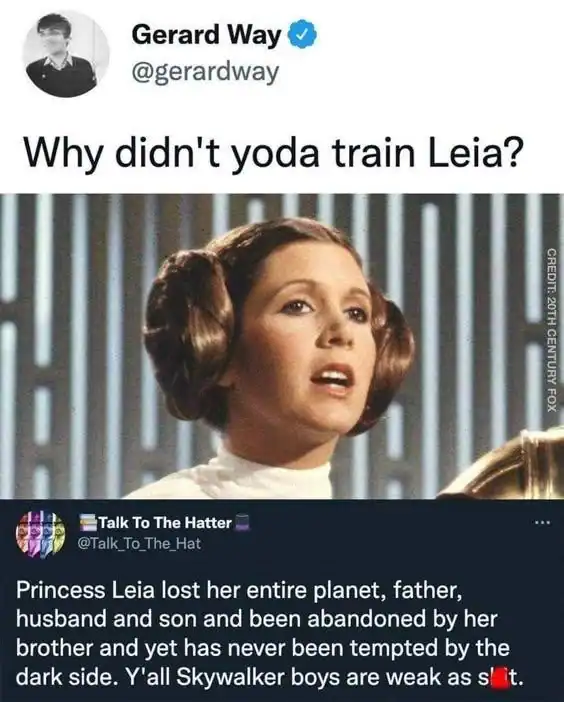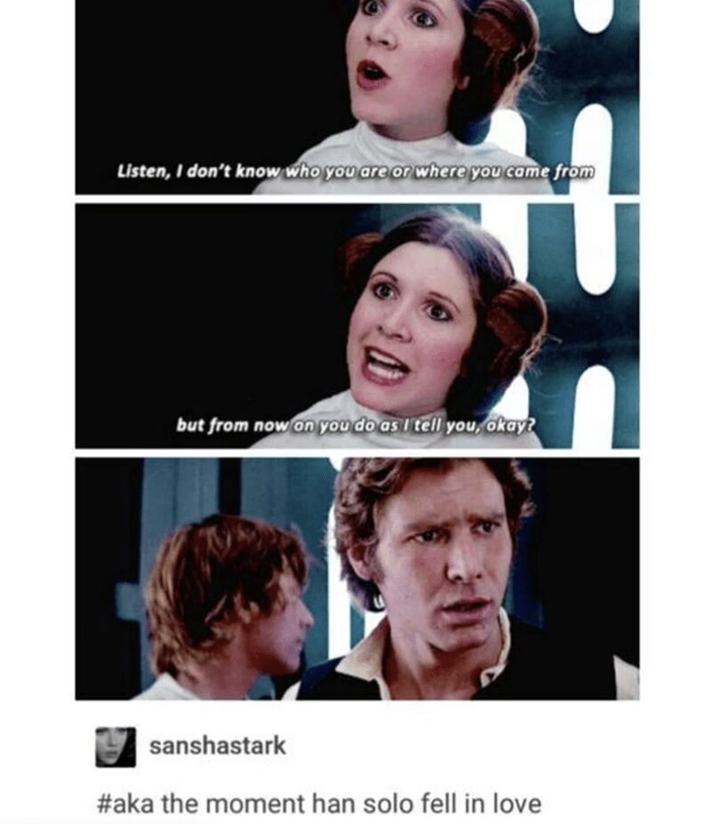 Before I was a General, I was the undisputed Queen of Sass and the only person capable of making Darth Vader look like a confused suburban dad in a cape. These Princess Leia memes are a tribute to a woman who could survive the vacuum of space but couldn’t survive a single conversation with Han Solo without a massive eye-roll. It is a galaxy-brain fan’s dream to see the rebellion finally get the credit it deserves for being led by a woman with a sharp tongue and an even sharper blaster.