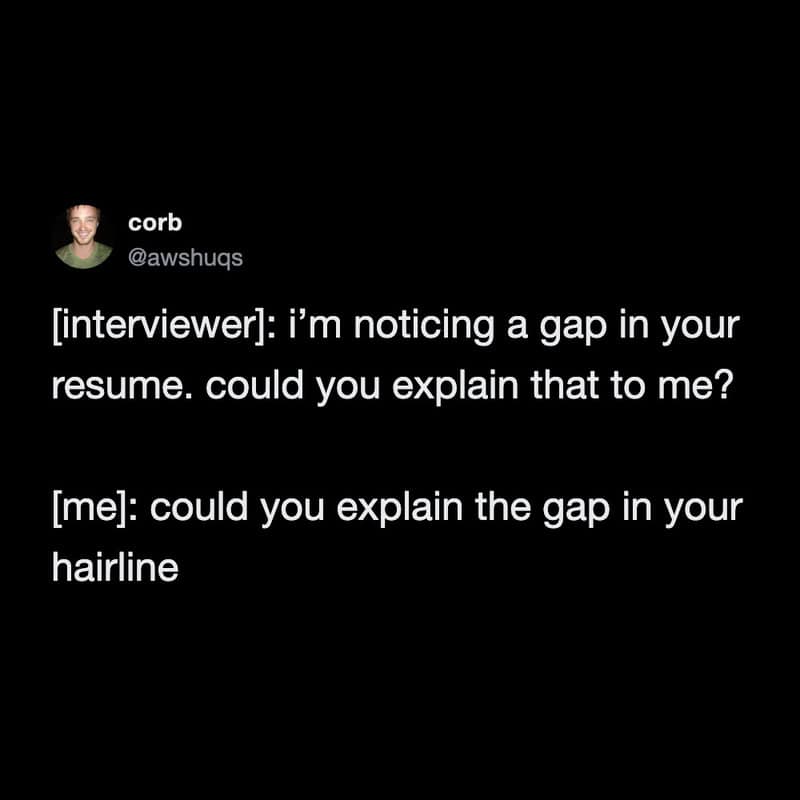 The resume-gap question is the purest example of corporate life pretending it’s not weird. It’s a little interrogation, but with fluorescent lighting and a smile. And the best answers all have the same energy: I’m not trapped in here with you, you’re trapped in here with me. Work memes thrive in that moment because it’s the first time adults are expected to justify being alive without producing output.