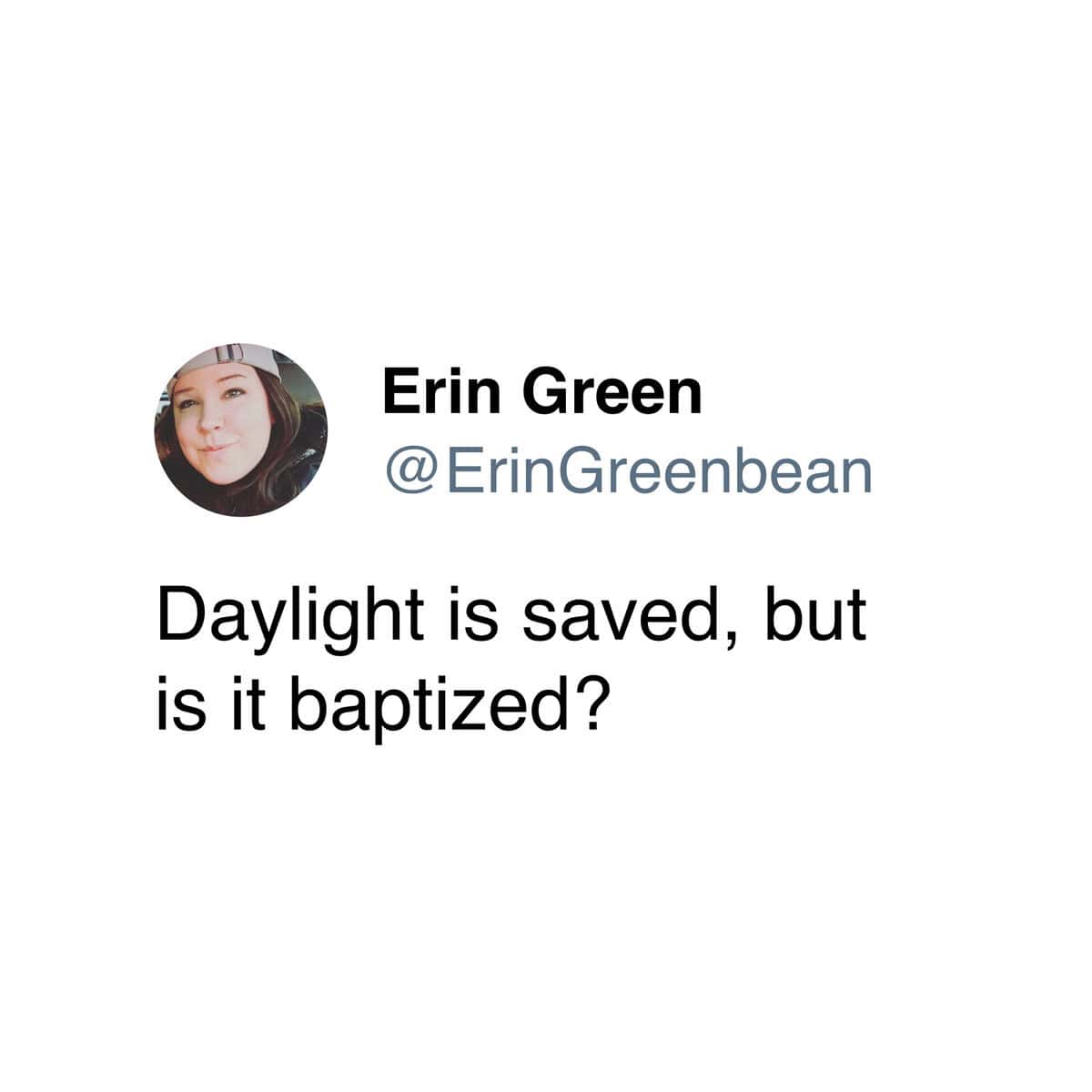 I’m Laura Bennett, and I would like to stop saving daylight and start saving my energy, thanks.