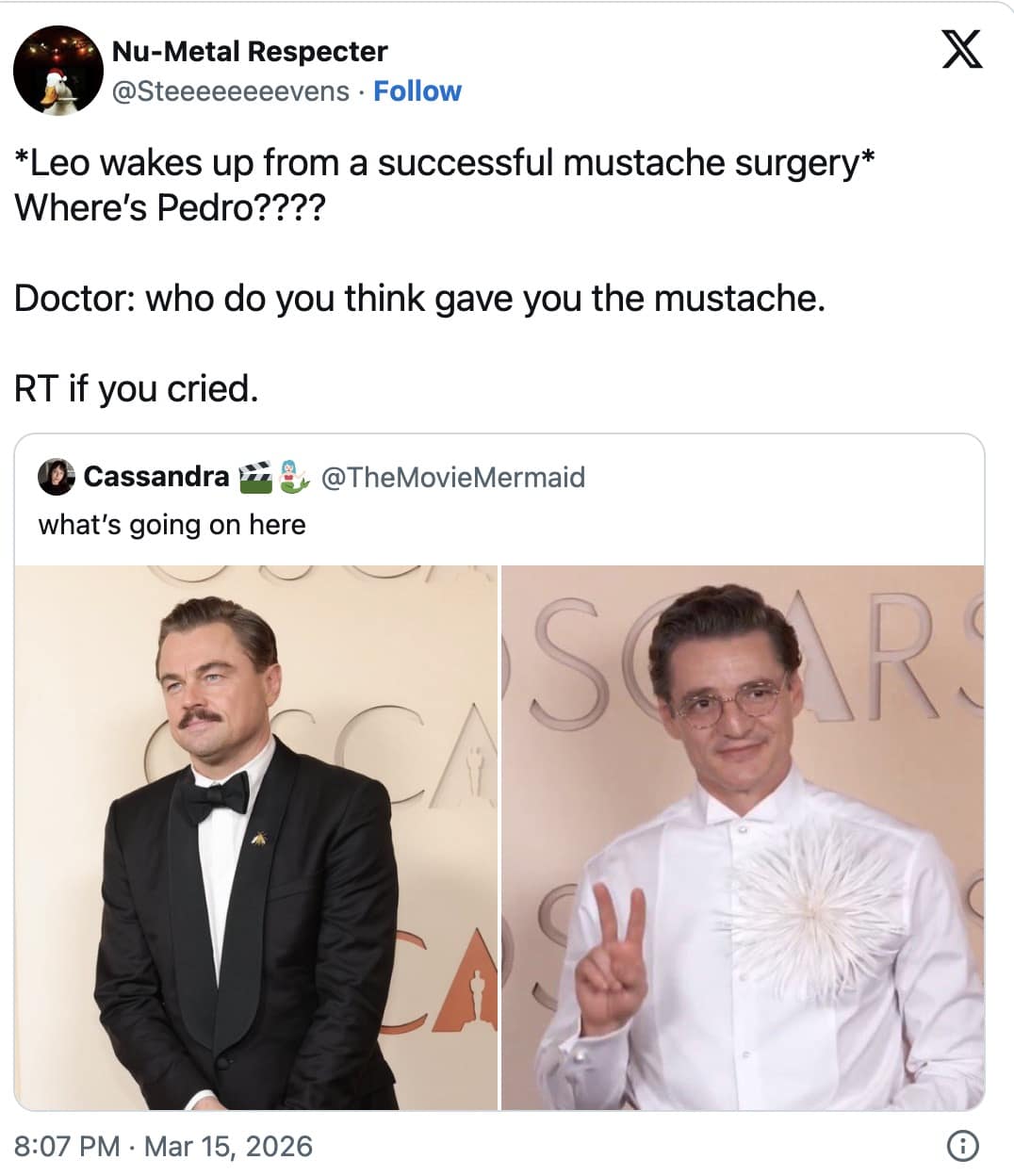 Chalamet’s look got turned into a whole cinematic universe of comparisons. The gift bag discourse returned (because nothing screams “art” like a $350,000 swag bag getting roasted for imaginary “16GB of RAM” energy). And the internet once again proved it can transform any celebrity grooming choice into a breaking-news event—Pedro Pascal’s face becoming its own cause, complete with petitions in the replies.