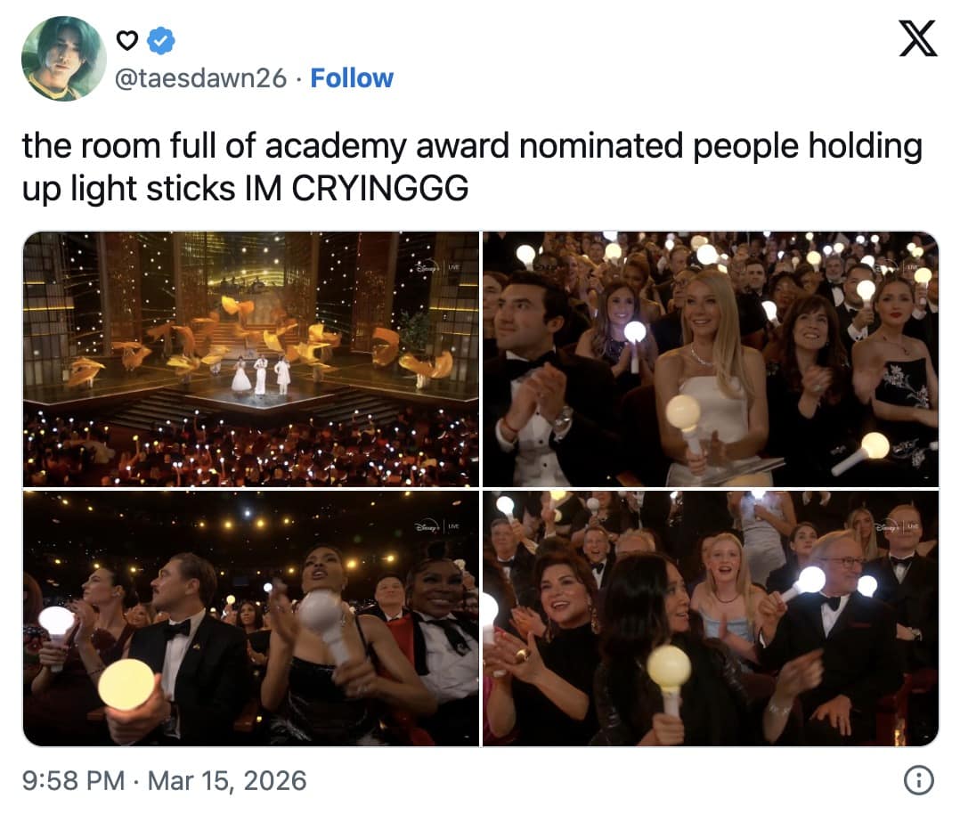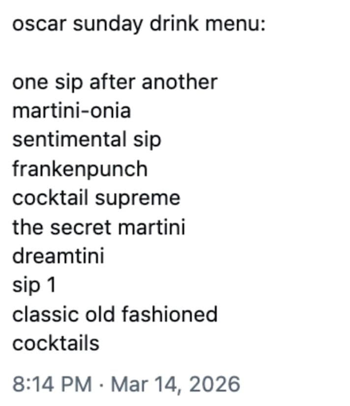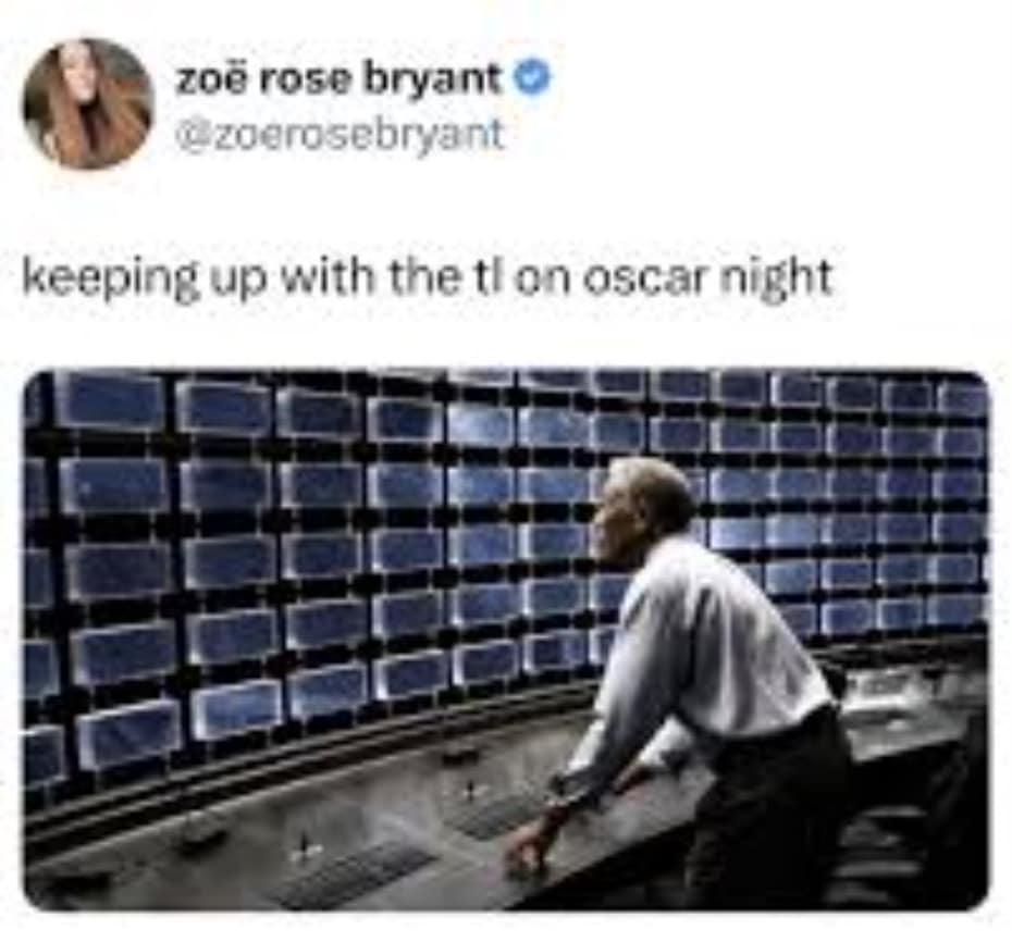 Also, the parenting meme lane was strong: people begging for “play-off music” in real life to silence children, coworkers, and their own inner monologue. Awards season content always ends up accidentally becoming “life is hard” content, and that’s why it spreads.