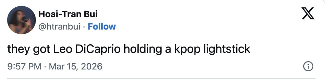 The Ted Sarandos dig (“a theater for the first time” vibes) was classic Conan: fast, sharp, and designed to make half the room laugh while the other half mentally calls their publicist. And then he did the most important thing a modern host can do: he minted a meme in real time. That DiCaprio onscreen caption moment wasn’t just a joke—it was a new template dropped into the wild.
