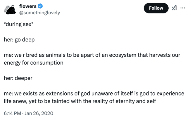 The romanticized quotes about passion being preferable to heartbreak are the ultimate vibe for a late-night scroll. These nsfw tweets prove that once the filter is off, the internet becomes a much more poetic and terrifying place. We celebrate the people who are brave enough to post their most unfiltered thoughts because it makes the rest of us feel a little more normal about our own weird cravings. Whether it is a joke about sex work and vegetables or a side profile in red and blue lighting, the energy is consistently bold and cheeky. We laugh because we have all had those intrusive thoughts, even if we were smart enough not to tweet them. It is a supportive community of the spicy and the slightly chaotic. I hope these images remind you to embrace your own unhinged side once in a while. Just maybe double-check your followers before you start a thread about melons. Stay sassy, stay spicy, and never stop being down bad for a good punchline. It is the only way to survive the timeline!