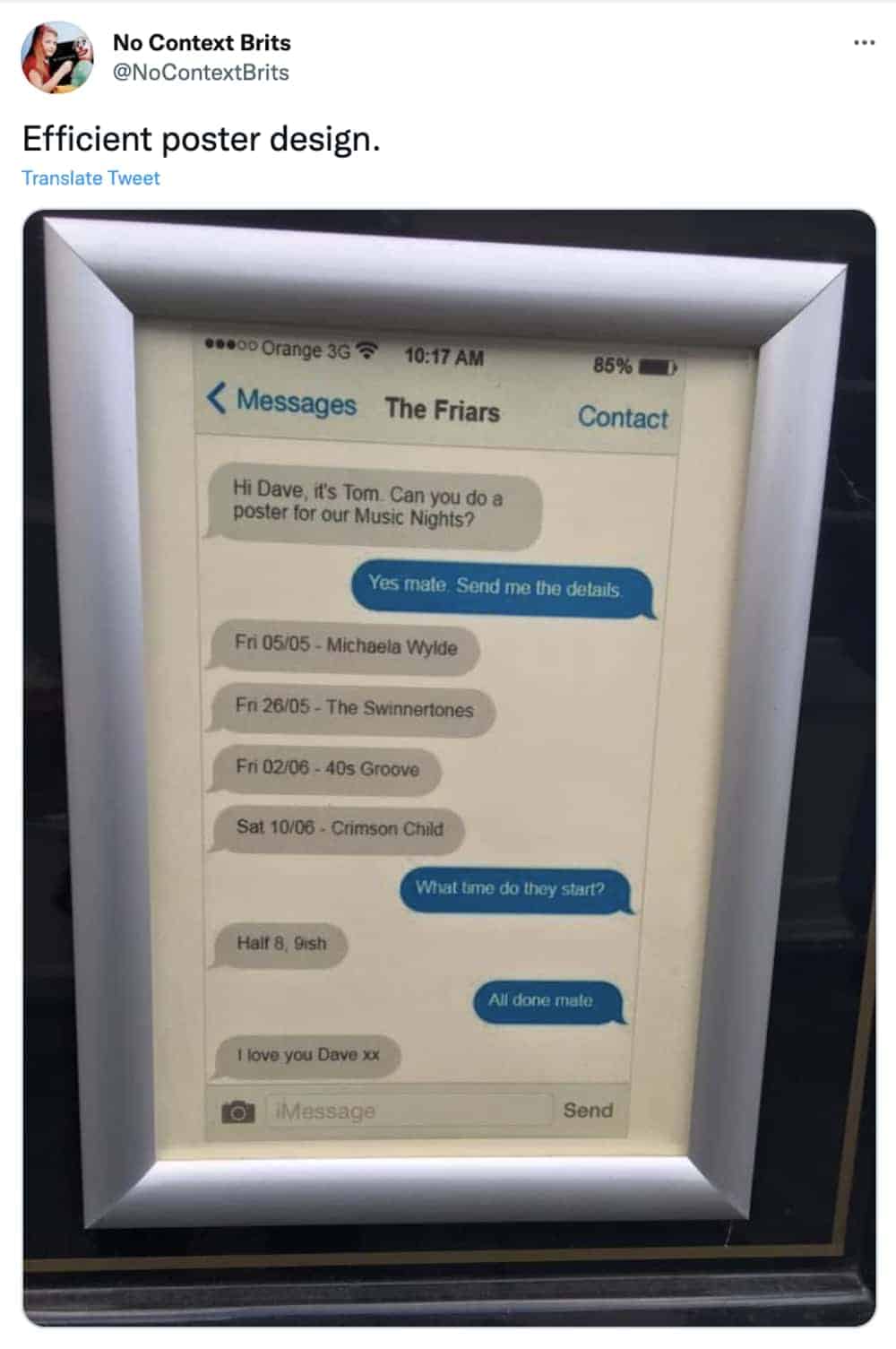 Dry wit humor of this variety works because it trusts the reader completely. The bull warning that is also a speed challenge is not explaining itself to you. It is presenting the information and assuming you will do the necessary work. The time travel pub meeting is advertising something. What exactly it is advertising remains unclear. The blue heritage plaque for a Victorian time travel inventor who apparently lived at this address in the year 2189 has decided that the timeline is a suggestion and moved on. These signs are not asking for your analysis. They are simply stating what they have to state and going about their business.