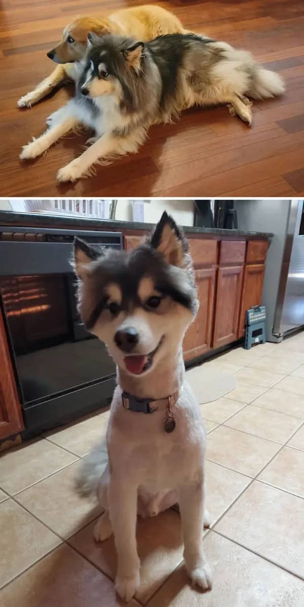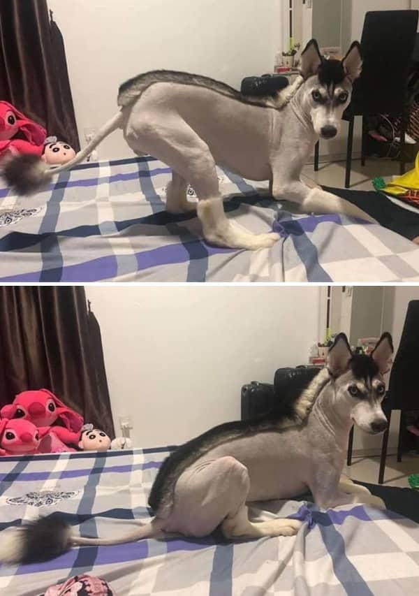 Funny dog grooming has produced a specific visual subcategory that no other pet-keeping tradition can match, which is the shaved Husky. The Husky shave is nature’s most dramatic haircut reveal, and it is dramatic every single time regardless of how many times the internet has already documented it. The head stays. The magnificent, wolf-adjacent, fully-fluffy head stays completely intact. The body, meanwhile, becomes something entirely different: leaner, paler, and carrying an expression that communicates a very specific kind of awareness that something has changed and the dog is still processing what that change means for its identity going forward. Three separate Huskies in this gallery have had this experience. Each one has handled it with a different flavor of dignified betrayal.