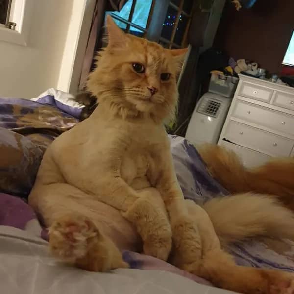 The lion cut is a real and legitimate grooming style, and the orange cat who received one while apparently seated on a laptop has emerged with the proportions of something that evolution did not produce but a groomer has, and they are carrying it with the particular brand of feline composure that cats deploy when they have decided a situation is beneath their direct acknowledgment. The fluffy head is fully intact. The body has been addressed. The laptop is still there. The cat has not moved. None of this will be discussed.