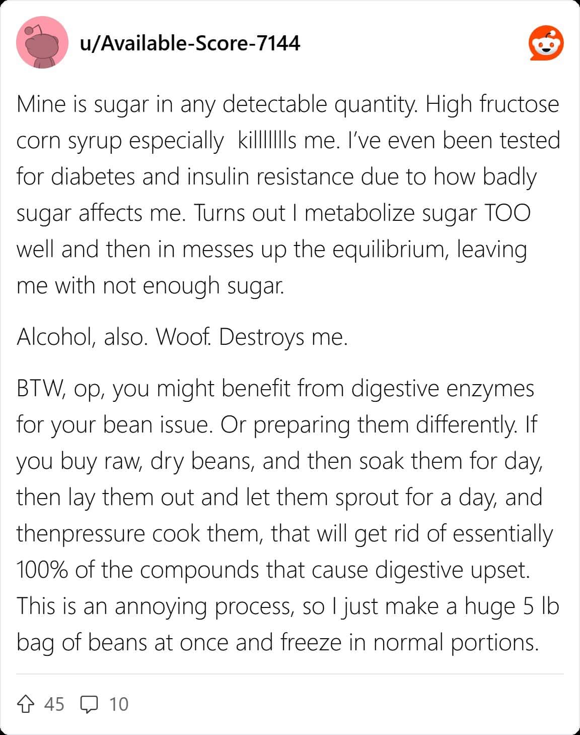 The fiber arc is the most educational section of the thread and the one that is, paradoxically, the funniest. The dietician commenter advising gradual fiber increase and increased water intake is correct. They are giving solid, evidence-based nutritional guidance in a thread full of people mourning ranch dressing, and the juxtaposition is doing something that no health communication campaign could have planned. The person who discovered beans and lentils feel better than ever is also correct and is thriving, and their presence in this thread is both inspiring and, as noted, deeply annoying in the specific way that correct people are annoying when you would prefer them to be struggling alongside you.