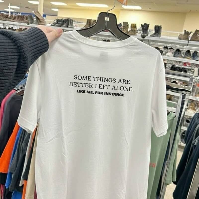 The hoodie message, “dear person behind me, I hope today doesn’t suck, lots of love,” is the gallery’s only entry that requires nothing from the viewer except receipt. No analysis. No dark humor decoding. A person wore a message to a stranger on their back in a classroom, and the message was accurate and kind, and that is the complete entry. It earns its place in this gallery by being the emotional reset button the content around it requires.